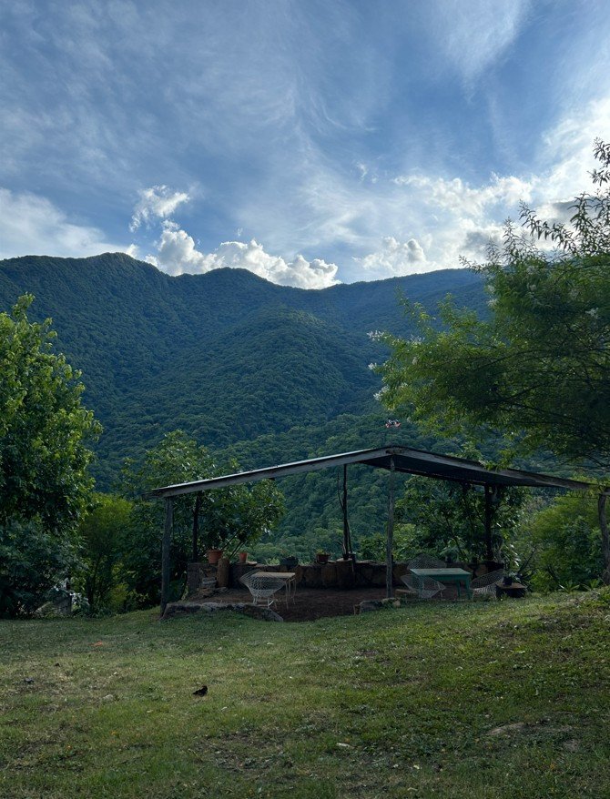 Desde aquí se disfruta de la vegetación del lugar y de los sonidos del pueblo. Al estar ubicado sobre una pequeña colina, es común despertarse con el canto de los gallos y los pájaros.